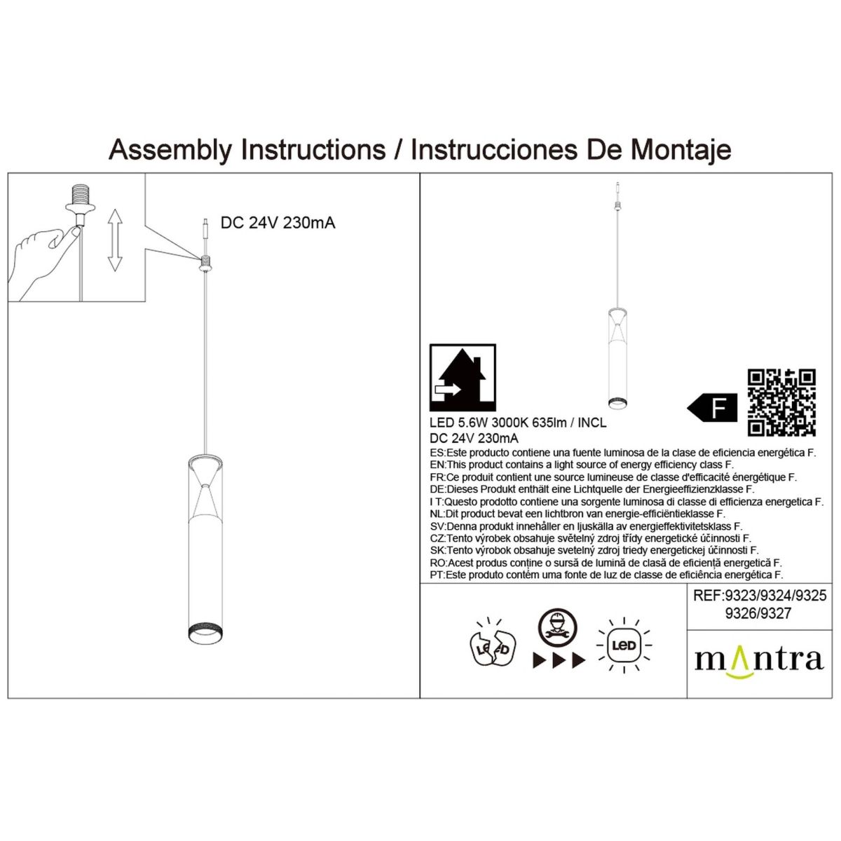 Подвесной модульный светильник без основания Mantra Spark 9326