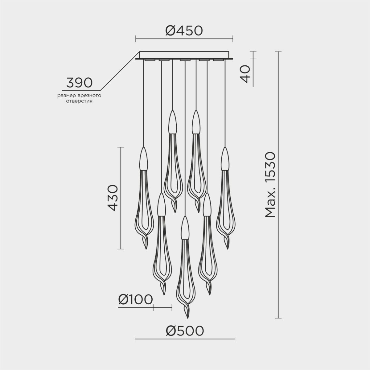| Диаметр врезного отверстия, мм | 390 |